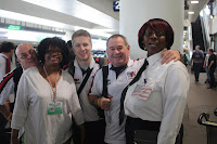 Stuck in the Wilshire Plaza reception, waiting for the guys to come back from getting the vehicles. Different reports come back via cell phones. As we wait Merv tells stories about shark attacks in Australia.