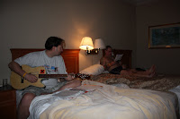 0500 - Phil is playing his guitar in his pants, Mervyn is looking up sightseeing spots, getting mixed up between John Wayne and Ronald Reagan and asking whether we should go and see the Queen Mary and the Russian nuclear submarine down in Long Beach.