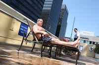 Henry, Gareth and Richard who had had their 'Skins' underwear on all day started to melt in the L.A. heat not helped by the taxi driver attempting to drop us off at the Beverley Hills Plaza Hotel where Julia Roberts was entertained by Richard Gere. The Hotel was 10 miles away from our hotel and 10 times the budget and I don't think flip flops would have been appreciated in the foyer.