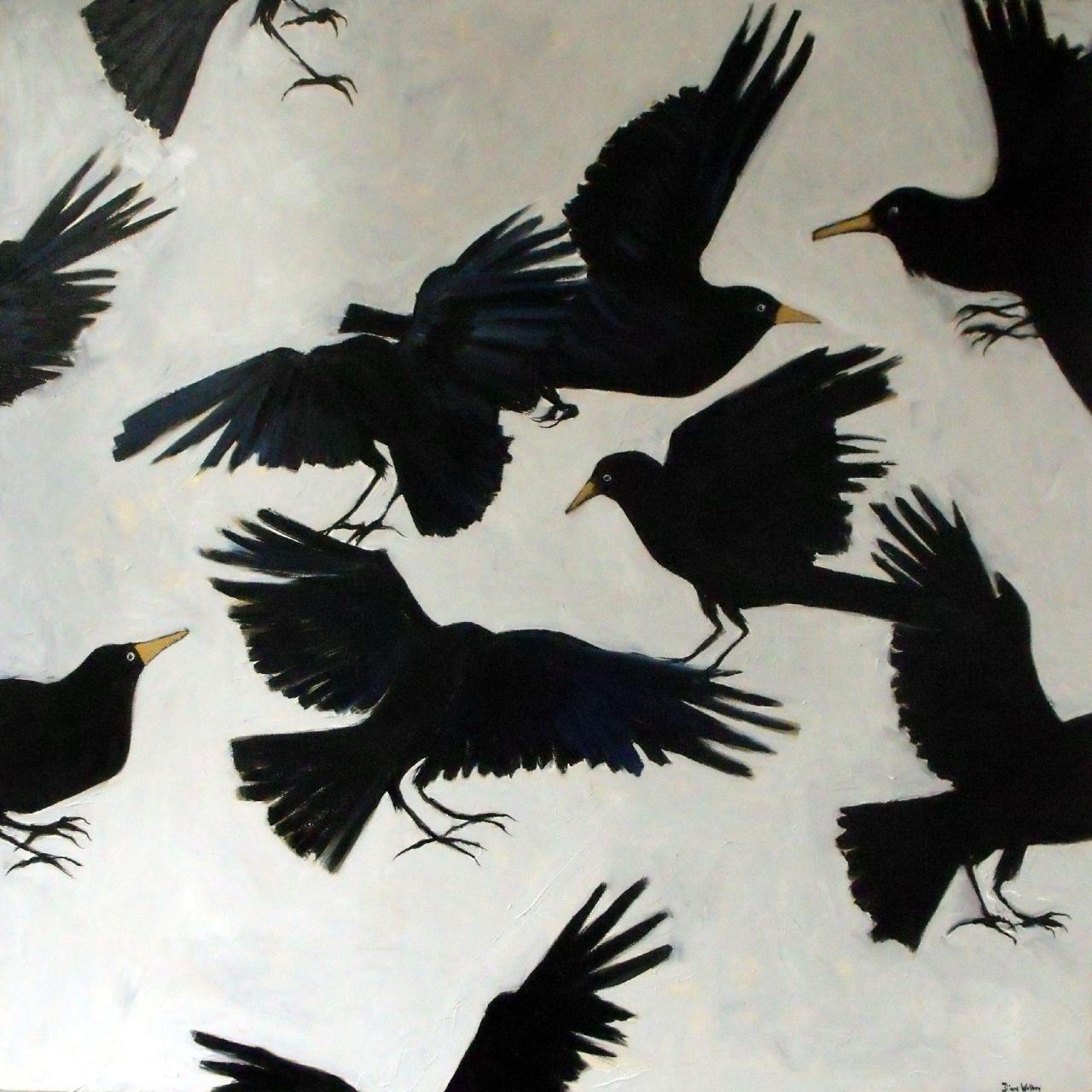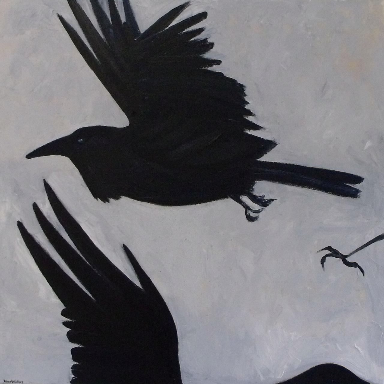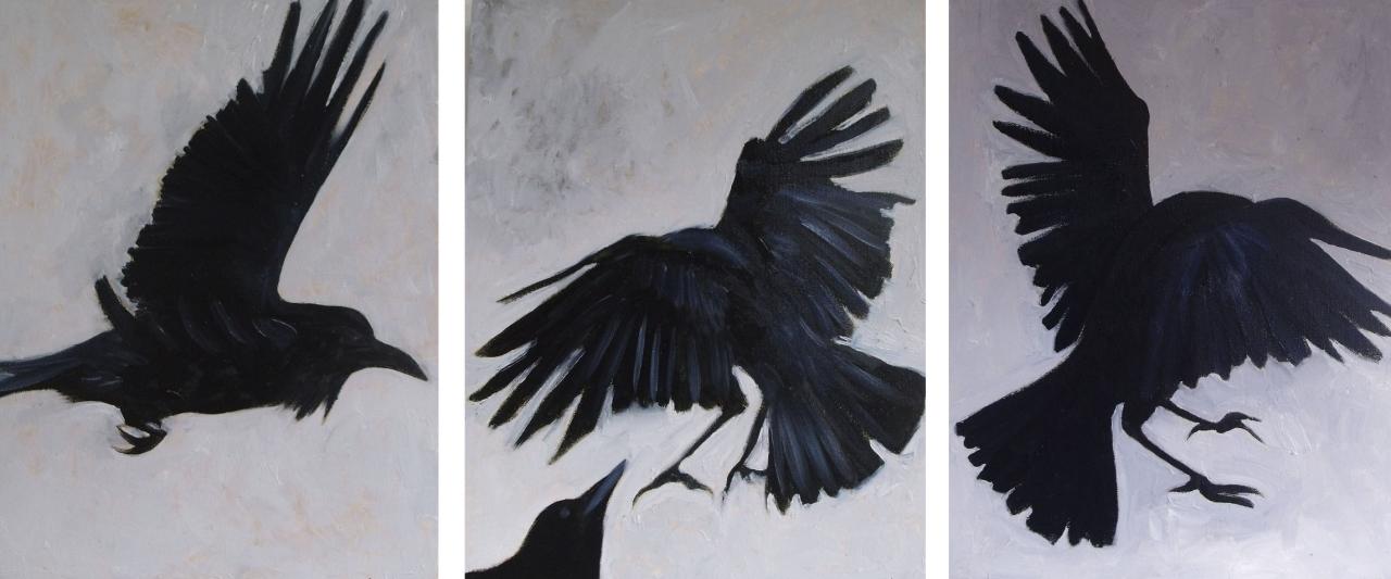 • crow triptych oil on canvas